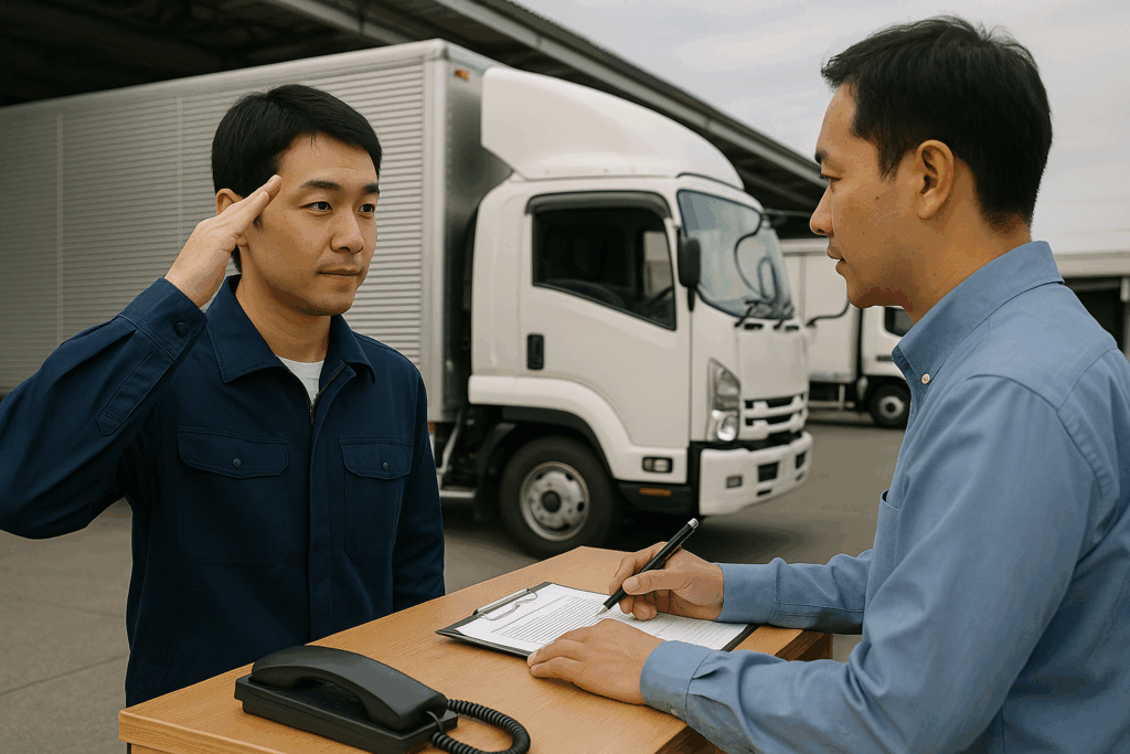 「お疲れ様です!安全第一で行ってきます!」